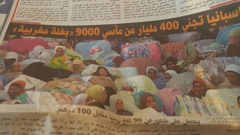 في عنوان مثير وغريب، وصفت جريدة اخبار اليوم المغربية لصاحبها بوعشرين، المغربيات العاملات بين سبتة المحلتة والمغربية، ب” البغلات” وكتبت بعنوان عريض على صفحتها الاولى ان اسبانيا تجني 400مليار من مأسي 9000 بغلة مغربية….وهو وصف يخدش المرأة المغربية العاملة، وهو استعمال ابشع لصورة المغربية,