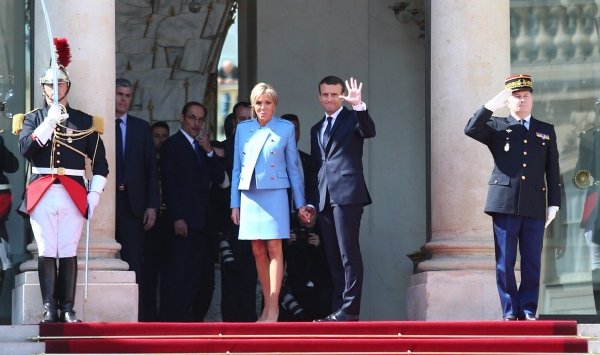 وخلال حفل التنصيب كان جديرا بالملاحظة أن يكشف العاملون مع ماكرون عن قيمة بذلته غامقة اللون وعن أن زوجته بريجيت ترونيو استعارت زيا من قطعتين ظهرت به خلال المراسم من دار أزياء لوي فيتون.