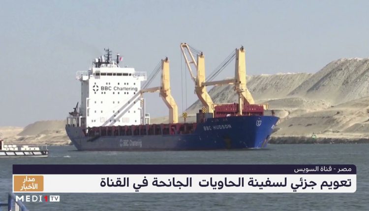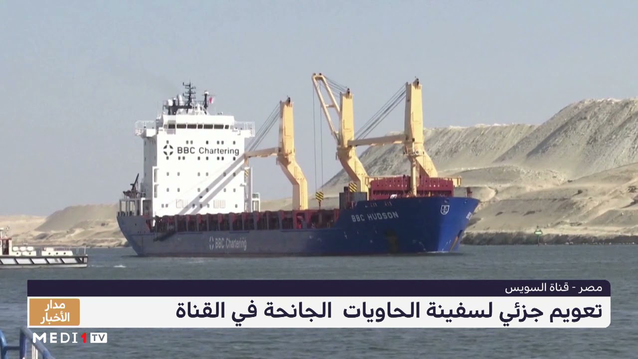 تعويم جزئي لسفينة الحاويات الجانحة في قناة السويس