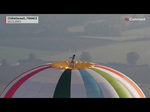 شاهد: مغامر فرنسي يحطم الرقم القياسي العالمي للوقوف في أعلى منطاد هواء ساخن