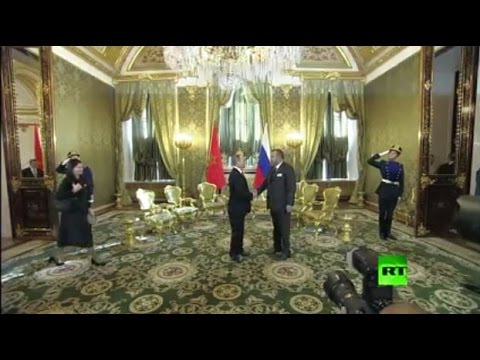 لحظة لقاء الملك المغربي محمد السادس مع الرئيس الروسي فلاديمير بوتين في الكرملين