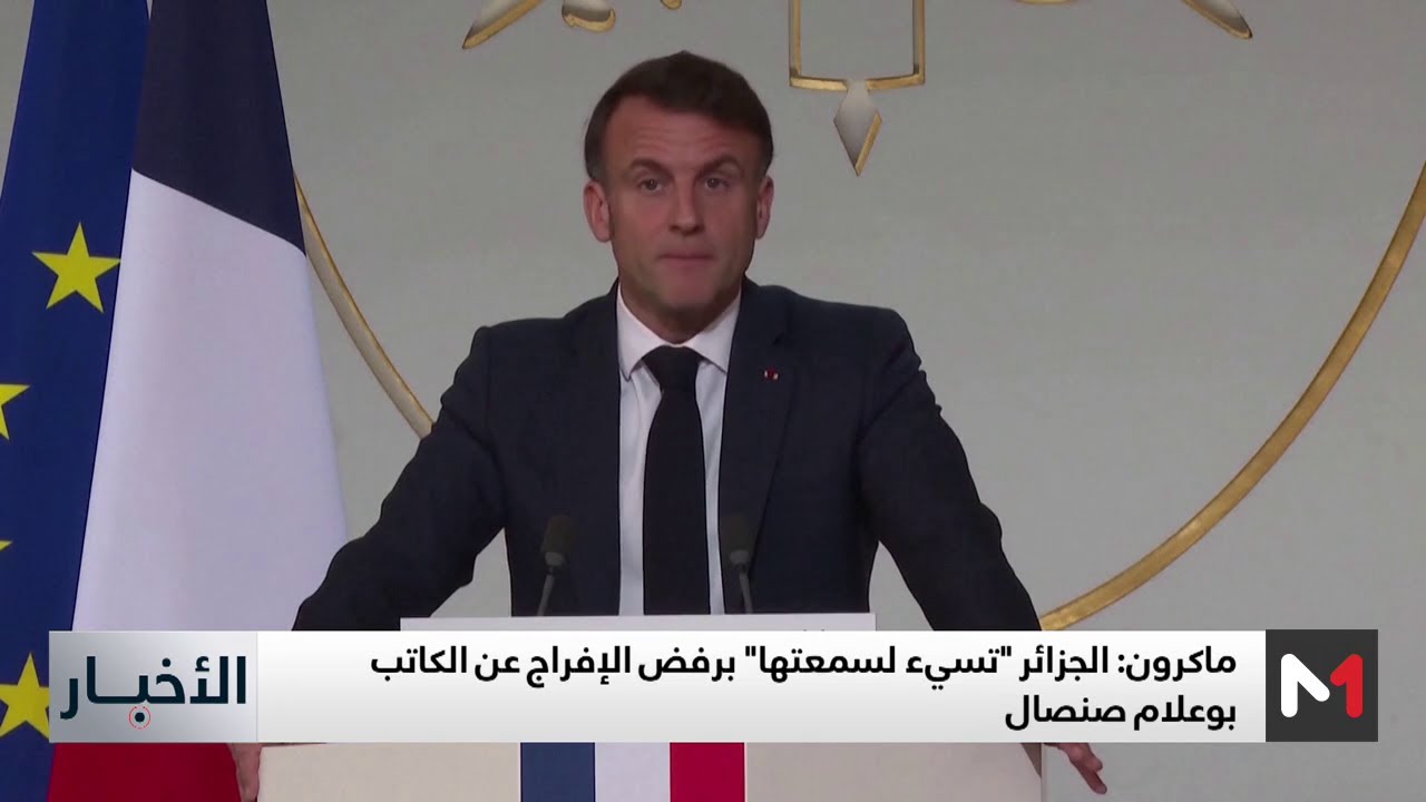 ماكرون: الجزائر “تسيء لسمعتها” برفض الإفراج عن الكاتب بوعلام صنصال فيديوفيديو بتاريخ يناير 7, 2025 مشاركة Facebook Twitter WhatsApp الجزائرالمغربتبونصنصالفرنسا