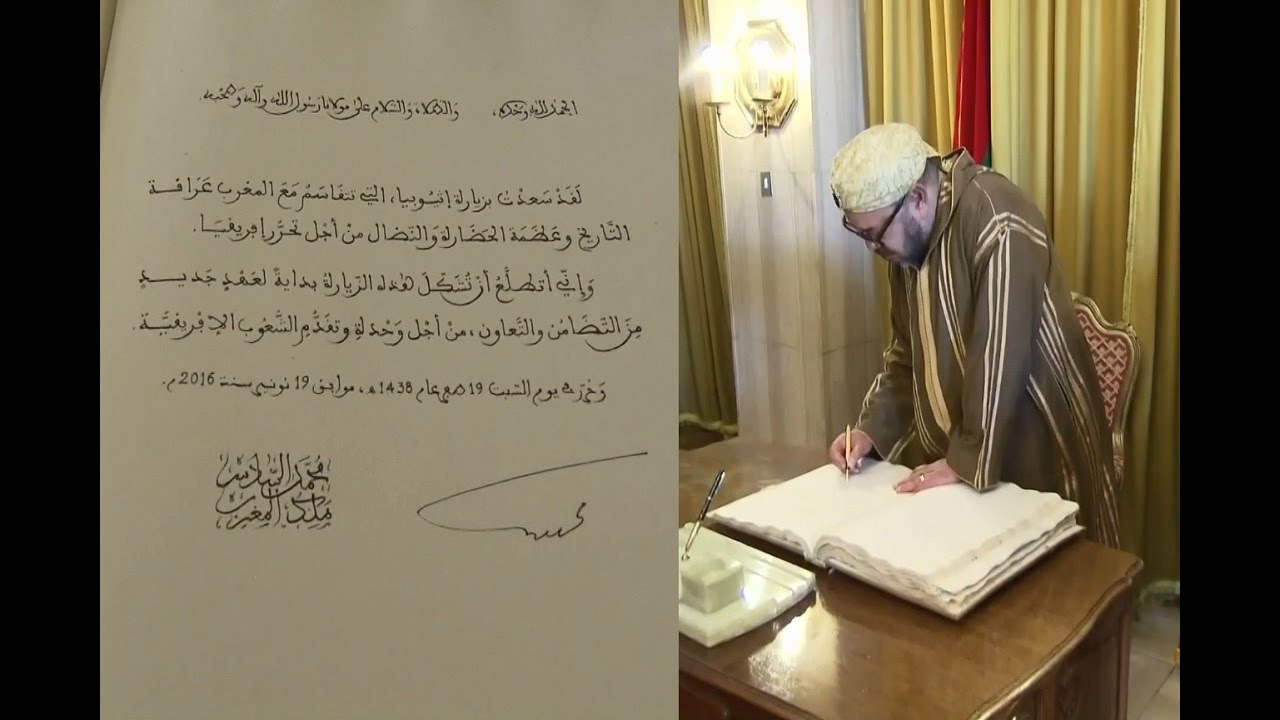 الملك محمد السادس يبهر بخطه العربي ويضع توقيعه في الدفتر الذهبي فيديو بتاريخ نوفمبر 19, 2016 مشاركة https://youtu.be/BQc9xYhb7so Facebook Twitter WhatsApp