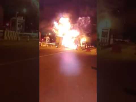فيديو.. شاحنة تحترق في محطة آداء في الطريق السيار