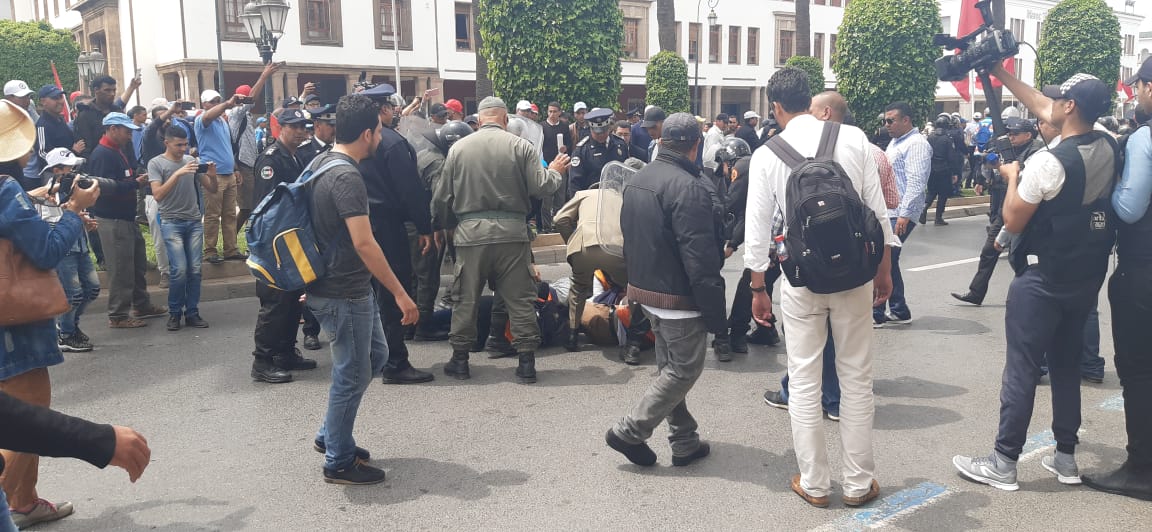 مصادر من التنسيقية الوطنية لأساتذة الزنزانة التاسعة أن قوات الأمن وقفت خمسة من الأساتذة .