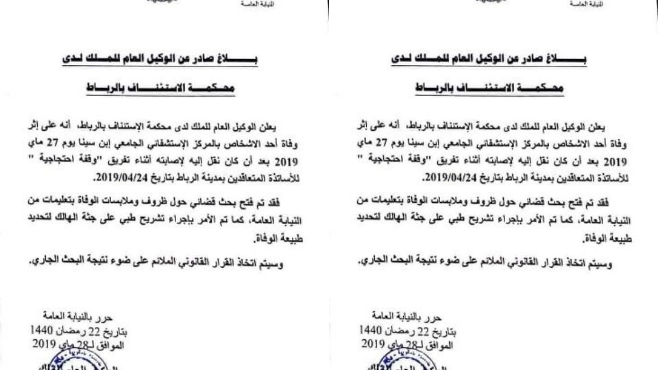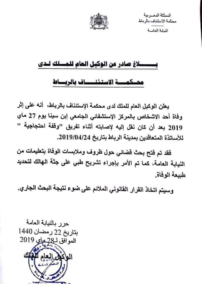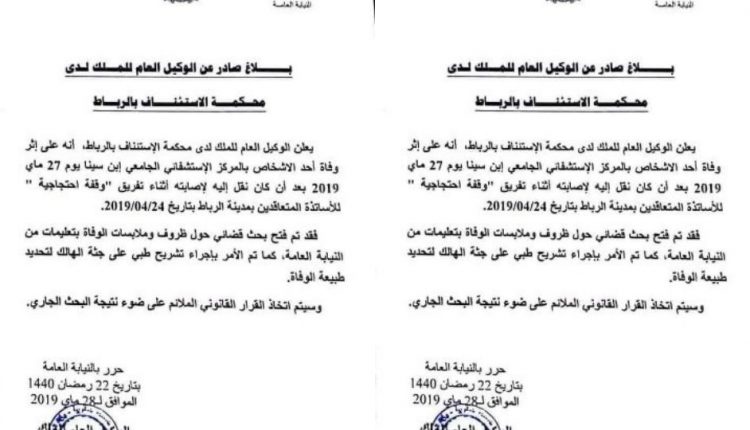 وثيقة : فتح بحث قضائي فقضية وفاة أب أستاذة متعاقدة مجتمع بتاريخ مايو 28, 2019 مشاركة قرر الوكيل العام للملك لدى محكمة الإستئناف بالرباط , فتح بحث قضائي في وفاة أب الأستاذة المتعاقدة بعد فض إعتصام لـ”أساتذة الكونطرا” . Facebook Twitter WhatsApp أخبار المغرباخبار المغربالرئيسية
