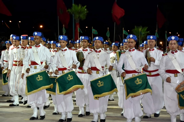 بتشكيلات متناسقة، كانت وحدات الحرس الملكي الحاملة للمشاعل المضيئة تتداخل في انضباط تام وإيقاع دقيق، ترافقهم في عروضهم إيقاعات من ربيرتوار الأغاني الوطنية، التي صدحت بعظمة المملكة واستحضرت فخر شعب بأكمله، في هذا اليوم المجيد من التاريخ.