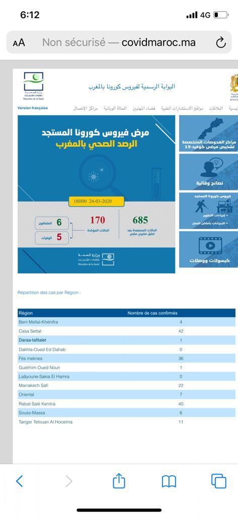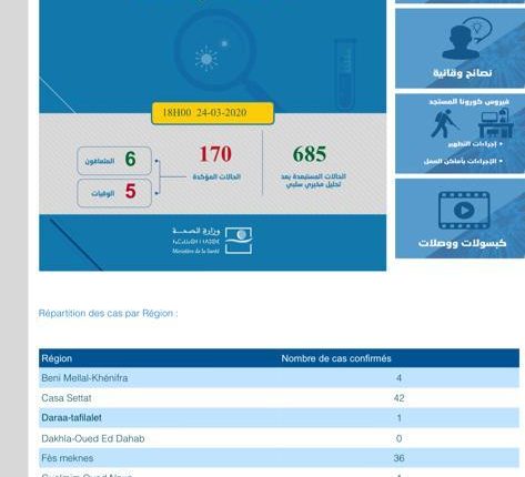 قال مدير الأوبئة بوزارة الصحة مساء اليوم الثلاثاء انه تم تسجيل 27 حالة جديدة بفيروس كورونا… ليصل إلى 170 حالة إصابة بفيروس كورونا مؤكدة…الى حدود مساء اليوم الثلاثاء.