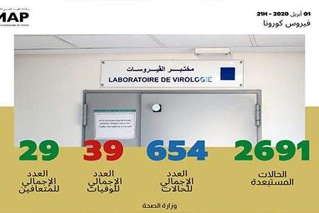 وأضافت الوزارة، على بوابتها الرسمية الخاصة بفيروس كورونا المستجد بالمغرب “www.covidmaroc.ma”، أن عدد الحالات المستبعدة بعد تحليل مخبري سلبي بلغ 2691 حالة.