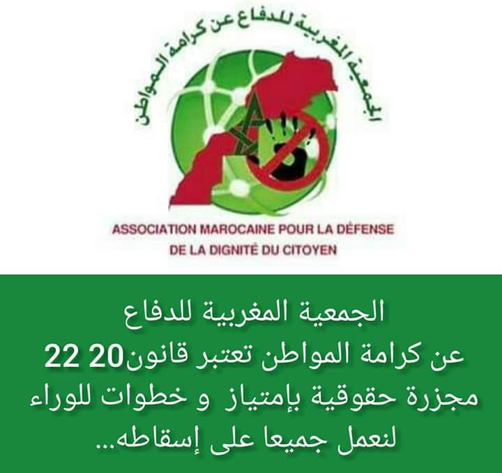 تفاجأ المكتب الوطني للجمعية المغربية للدفاع عن كرامة المواطن من تسريب وثيقة لمشروع قانون رقم 20-22 المتعلق باستعمال شبكات التواصل الاجتماعي وشبكات البت المفتوح والشبكات المماثلة، والذي صادقت عليه الحكومة في اجتماعها بتاريخ 19 مارس 2020،وطرحها للنقاش العام قي ظروف استثنائية تتطلب التلاحم والتضامن.وقد خلص المكتب الوطني بعد استشارة كل مكوناته الى مايلي: