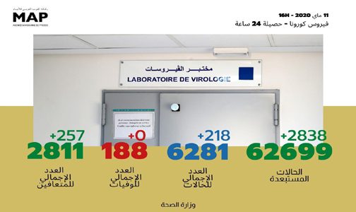 وأوضح مدير مديرية علم الأوبئة ومكافحة الأمراض بوزارة الصحة السيد محمد اليوبي، في تصريح نقلته وكالة المغرب العربي للأنباء مباشرة على قناتها “M24″، وإذاعتها “ريم راديو”، أن عدد الحالات التي تماثلت للشفاء من المرض حتى الآن ارتفع إلى 2811 حالة، بعد تماثل 257 حالة جديدة للشفاء، فيما لم يتم تسجيل أية حالة وفاة جديدة ليستقر العدد بذلك في 188 حالة.
