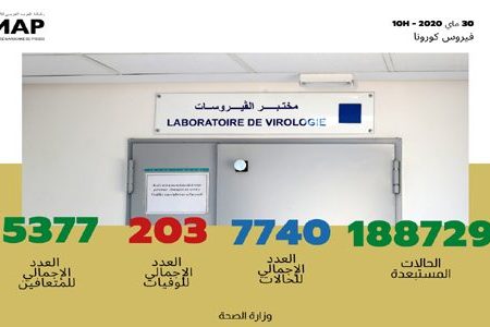 وأضافت الوزارة، على بوابتها الرسمية الخاصة بفيروس كورونا المستجد بالمغرب “www.covidmaroc.ma”، أن عدد الحالات التي تماثلت للشفاء من المرض حتى الآن ارتفع إلى 5377 حالات بعد تماثل 106 حالات جديدة للشفاء، بينما ارتفع عدد حالات الوفاة الى 203 حالة ، وذلك بعد تسجيل حالة جديدة .