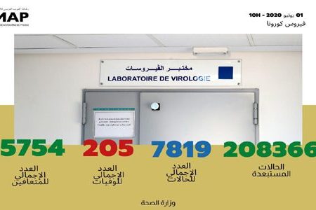وأضافت الوزارة، على بوابتها الرسمية الخاصة بفيروس كورونا المستجد بالمغرب “www.covidmaroc.ma”، أن عدد الحالات التي تماثلت للشفاء من المرض حتى الآن ارتفع إلى 5754 حالة بعد تماثل 295 حالة جديدة للشفاء، بينما استقر عدد حالات الوفاة عند205 حالات ، إذ لم يتم تسجيل أي حالة جديدة .