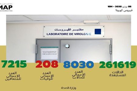 وأضافت الوزارة، على بوابتها الرسمية الخاصة بفيروس كورونا المستجد بالمغرب “www.covidmaroc.ma”، أن عدد الحالات التي تماثلت للشفاء من المرض حتى الآن ارتفع إلى 7215 حالة بعد تماثل 20 حالة جديدة للشفاء، بينما استقر عدد حالات الوفاة في 208 حالات .
