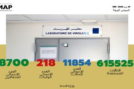 وأضافت الوزارة، على بوابتها الرسمية الخاصة بفيروس كورونا المستجد بالمغرب “www.covidmaroc.ma”، أن عدد الحالات التي تماثلت للشفاء من المرض حتى الآن ارتفع الى 8730 حالة بعد تماثل 7 حالة جديدة للشفاء، بينما استقر عدد الوفيات في 220.
