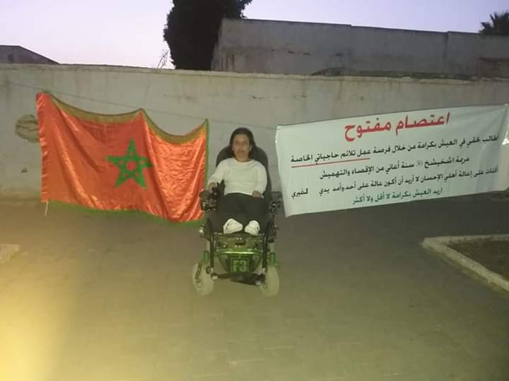من أمام مقر عمالة الخميسات، لازالت مريم شخيشخ، الفتاة ذات الإحتياجات الخاصة، في اعتصام مفتوح ولليوم السادس، وأمام أعين عامل اقليم الخميسات منصور قرطاح، وبتضامن واسع ومطلق عبر صفحتها في العالم الأزرق، كتبت مريم الشجاعة والمواطنة المغربية التي تناضل من أجل حقها الشرعي…كتبت: صباح الخير اليوم السادس ولا للاستسلام صامدة من أجل العيش بكرامة.