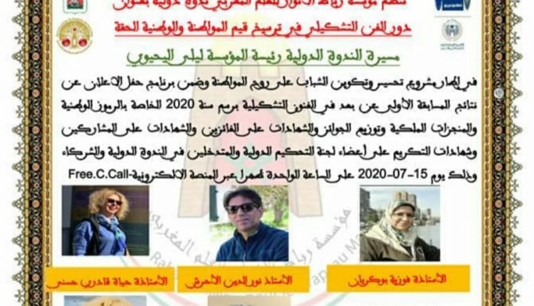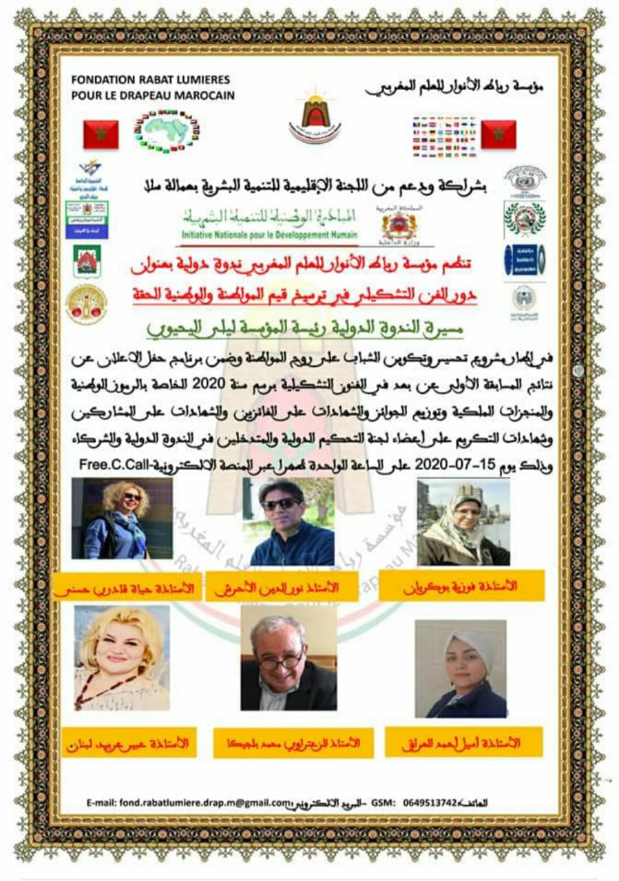 تنظم مؤسسة رباط الأنوار للعلم المغربي، بدعم من اللجنة الاقليمية للتنمية البشرية و بتنسيق مع فضاء الذاكرة التاريخية للمقاومة والتحرير بسلا و المديرية الاقليمية للتربية والتكوين والرابطة العالمية للابداع والعلوم الانسانية فرع المغرب، مسابقة عن بعد في الفنون التشكيلية حول محاور خاصة برموز الوطنية و المنجزات الملكية في عهد جلالة الملك محمد السادس نصره الله لفائدة تلاميذ وتلميذات المؤسسات التعليمية بالقطاعين العام والخاص والطلبة الجامعيين بعمالة سلا.