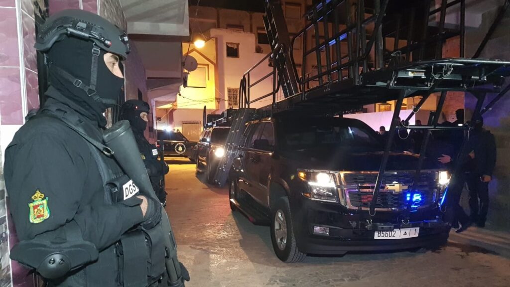 وأوضح بلاغ للمكتب المركزي للأبحاث القضائية التابع للمديرية العامة لمراقبة التراب الوطني أن التدخل الأمني الذي باشرته عناصر القوة الخاصة التابعة لفرقة التدخل السريع، أسفر عن توقيف ثلاثة متطرفين يشتبه في ارتباطهم بهذه الخلية الإرهابية، تتراوح أعمارهم ما بين 21 و38 سنة، وتربط أحدهم علاقة عائلية بمقاتل بصفوف “داعش” بالمنطقة السورية العراقية.
