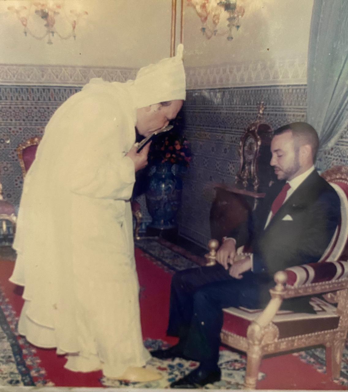 كما التقى الراحل الحسن الثاني الذي قال له ( “ارجع يا دكتور إلى الصحراء إذا أردت. ليس في قلبك غْرام واحد من الانفصال، وإذا أعطاك الإسبان أي مسؤولية تسلّمها، حتى ولو وضعوك على رأس دولة في الصحراء،) لكن بمشيئة الله في دجنبر 1975 سأشرب معكم الشاي في العيون”. جملة لم أفهمها، المهم ذهبت إلى الدار البيضاء ومنها إلى باريس، ولم أفهم ما رمى إليه الملك الراحل إلا في 16 أكتوبر 1975 عندما أعلن سيدنا عن نداء المسيرة الخضراء. كنت حينها في الداخلة مع الوالد رحمه الله في بيته، وكنا ننصت إلى نشرة الواحدة ظهرا من الرباط، كعادتنا، وعندما سمعنا نداء المسيرة من طرف الملك، في 16 أكتوبر 1975، قلت للوالد إن سيدنا سيشرب فعلا معنا الشاي في دجنبر….)