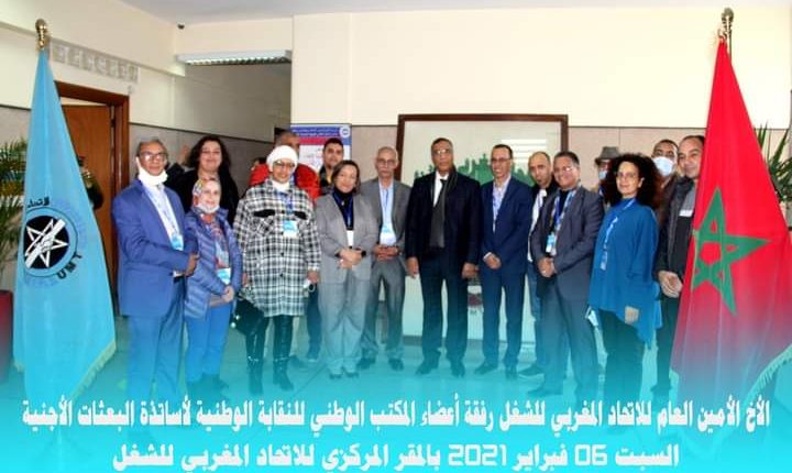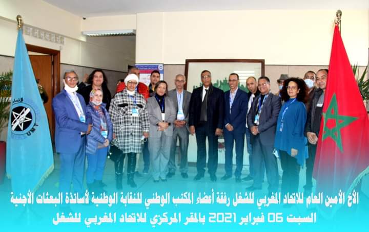شهدت النقابة المركزية للإتحاد المغربي للشغل يوم السبت 6فبراير2021 ميلاد النقابة الوطنية للمدرسات و المدرسين الموضوعين رهن إشارة البعثات الأجنبية، في ظروف طبعتها المسؤولية نظرا لما تتميز به هذه الشريحة المجتمعية من كفاءات وأطر عالية المستوى تعمل في إطار منظومة تربوية هادفة تساهم في الارتقاء بجودة التعليم ضمن المؤسسات الأجنبية المقيمة بالمغرب.