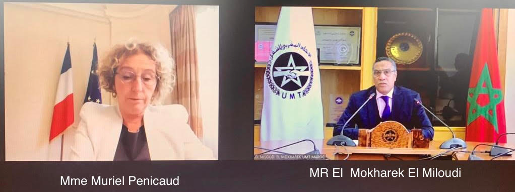 عقد الأمين العام للاتحاد المغربي للشغل الميلودي المخارق، يوم 01 دجنبر 2021 لقاء عن بعد مع السيدة Muriel Penicaud، وزيرة العمل والتشغيل والإدماج في الحكومة الفرنسية سابقا والسفيرة الدائمة لفرنسا لذى منظمة التعاون والتنمية الاقتصادية (OCDE) ، بطلب من هذه الأخيرة، تمحور حول ترشحها لمنصب المديرة العامة لمنظمة العمل الدولية بجنيف، باعتبار الاتحاد المغربي للشغل، المنظمة النقابية التي تتمتع بحق التصويت.