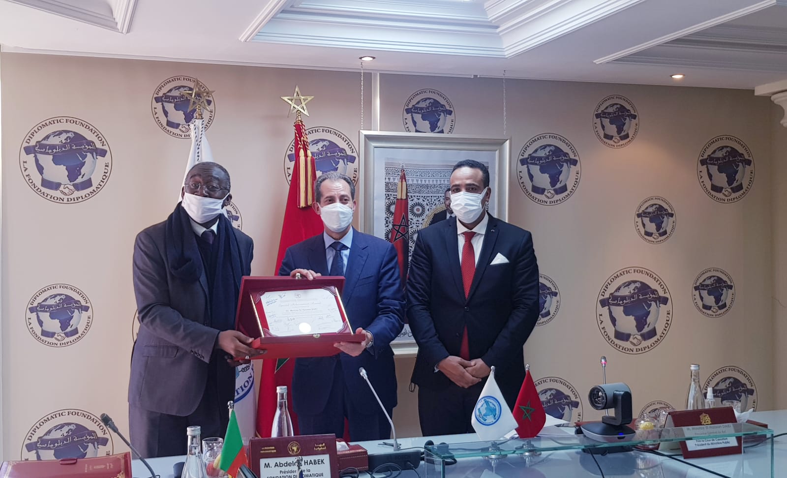 تسلم الوكيل العام للملك لدى محكمة النقض رئيس النيابة العامة مولاي الحسن الداكي، زوال اليوم الأربعاء 29 دجنبر 2021 درع المؤسسة الدبلوماسية، وذلك خلال لقاء جمعه مع عدد من السفراء ورؤساء البعثاث الأجنبية بالمغرب.