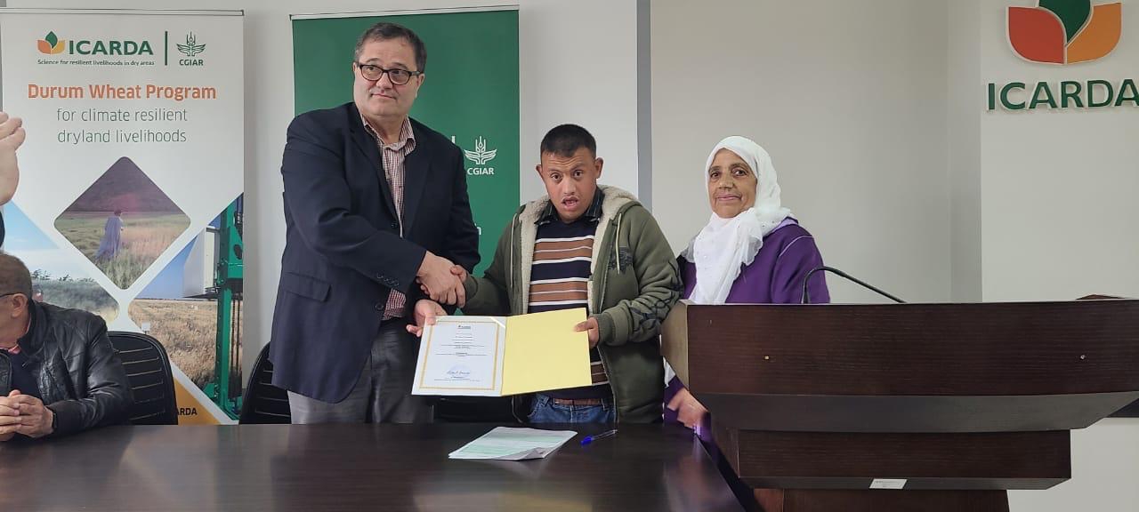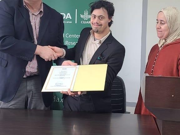 عقدين عمل لشخصين من ذوي الثلث الصبغي التابعة لجمعية(AMSAT) بمركز الدولي للبحث الزراعي