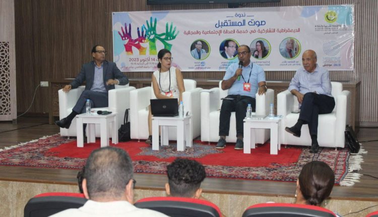 في إطار المبادرات الموازية للاجتماعات السنوية للبنك الدولي وصندوق النقد الدولي التي احتضنتها مدينة مراكش طيلة الأسبوع الماضي، نظمت جمعية الشعلة للتربية والثقافة ندوة وطنية حول موضوع “الديمقراطية التشاركية في خدمة العدالة الاجتماعية والمجالية” بالمركز الجامعي التابع لجامعة القاضي عياض ، وذلك على هامش الدورة السنوية لهذا اللقاء الدولي الرفيع المستوى الذي احتضنته بلادنا.. الندوة التي تتبعها جمهور من المهتمين والفعاليات المدنية والحقوقية ووسائل الإعلام الوطنية والجهوية ،ساهم في تأطيرها الأستاذ عبد المقصود الراشدي من موقعه كباحث في علم الاجتماع ومتتبع للسياسات العمومية ورئيس المؤسس لجمعية الشعلة إلى جانب الأستاذة سناء الزعيمي باحثة في حقل التنمية البشرية والتهيئة المجالية ، والأستاذ عبد الكبير اجميعي باحث في مجال الحكامة الترابية .