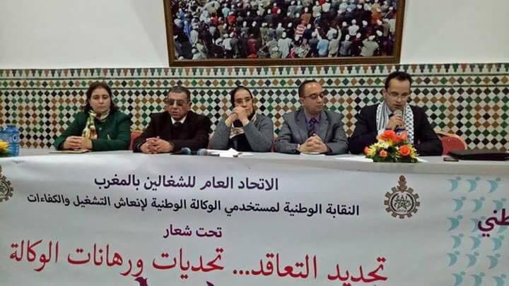 ان المؤتمر الوطني لنقابة مستخدمي الوكالة الوطنية لانعاش التشغيل و الكفاءات المنضوي تحت لواء الاتحاد العام للشغالين بالمغرب و هو ينهي بنجاح مؤتمره الوطني الرابع يؤكد على ان معركة النظام الاساسي للوكالة هي أم المعارك و يعتبر ان المدخل الحقيقي لعصرنة و تطور الوكالة يمر وجوباً عبر باب اخراج نظام اساسي جديد يعزز المكتسبات و يحقق مطالب اقرار نظام متطور و محفز و يتماشى مع المتطلبات الراهنة للمورد البشري للوكالة الرهان الحقيقي لهذه المؤسسة المواطنة .