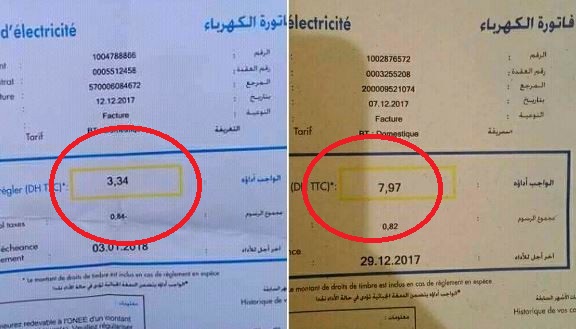 تداول نشطاء مواقع التواصل الإجتماعي , صور لفواتير الماء والكهرباء بمدينة جرادة .