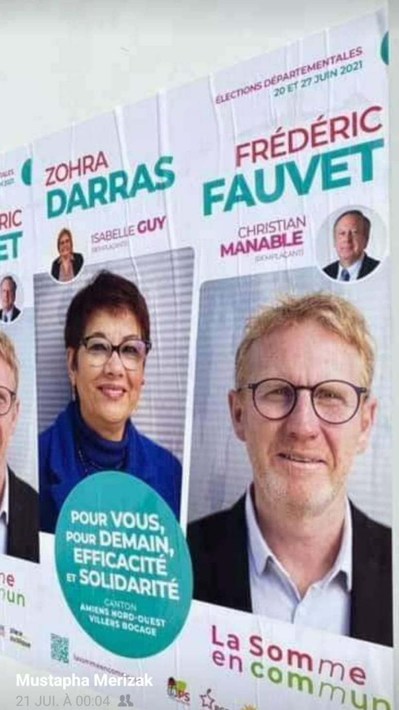 فازت المغربية زهرة دراس  في الانتخابات التي جرت الاحد بفرنسا.