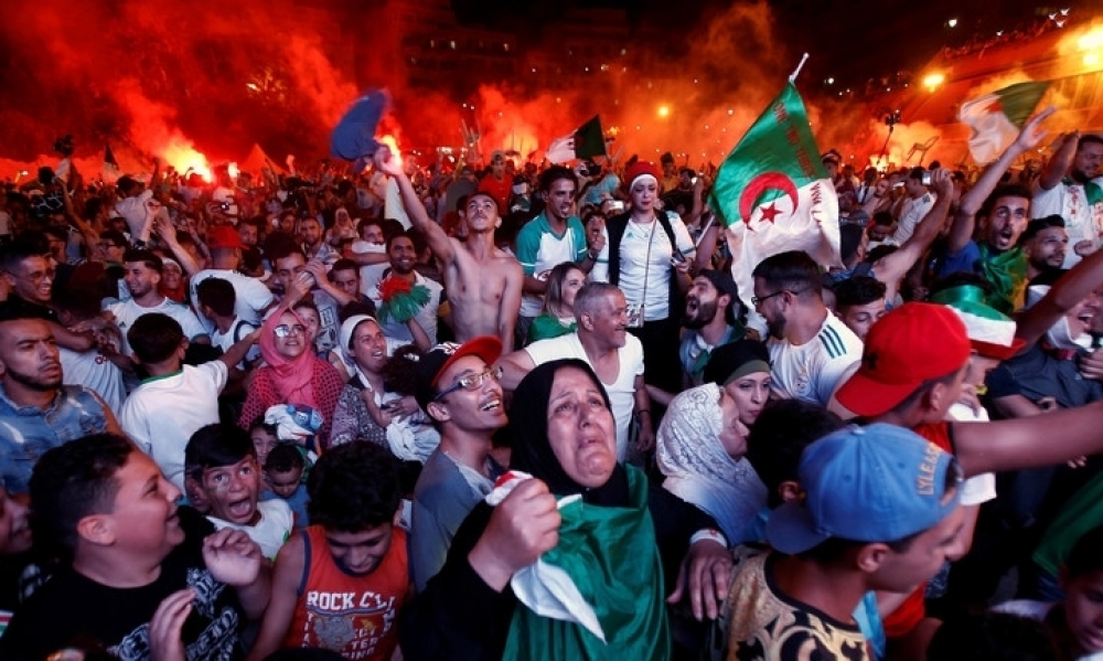 ونزل الآلاف من أنصار منتخب الجزائر لكرة القدم إلى الشوارع للاحتفال بتأهل فريقهم الأحد لنهائي كأس أمم إفريقيا التي تجري مبارياتها في مصر.