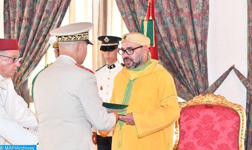 استقبل صاحب الجلالة الملك محمد السادس، القائد الأعلى ورئيس أركان الحرب العامة للقوات المسلحة الملكية، مرفوقا بصاحب السمو الملكي ولي العهد الأمير مولاي الحسن، وصاحب السمو الملكي الأمير مولاي رشيد، اليوم الأربعاء بنادي ضباط الحرس الملكي بتطوان، الجنرال دو كوردارمي عبد الفتاح الوراق، المفتش العام للقوات المسلحة الملكية، الذي سلم لجلالة الملك برقية تهنئة وولاء وإخلاص مرفوعة إلى جلالته باسم الضباط وضباط الصف وجنود القوات المسلحة الملكية، وذلك بمناسبة الذكرى الـ20 لتربع جلالة الملك على عرش أسلافه المنعمين.