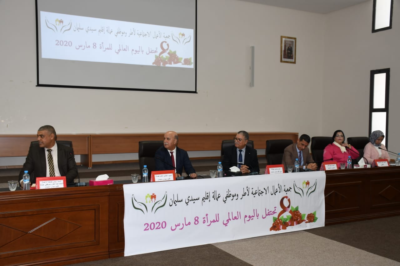 مناسبة اليوم العالمي للمراة نظمت جمعية الأعمال الاجتماعية الأطر وموظفي عمالة اقليم سيدي سليمان بقاعة الاجتماعات بالعمالة بحضور كل من