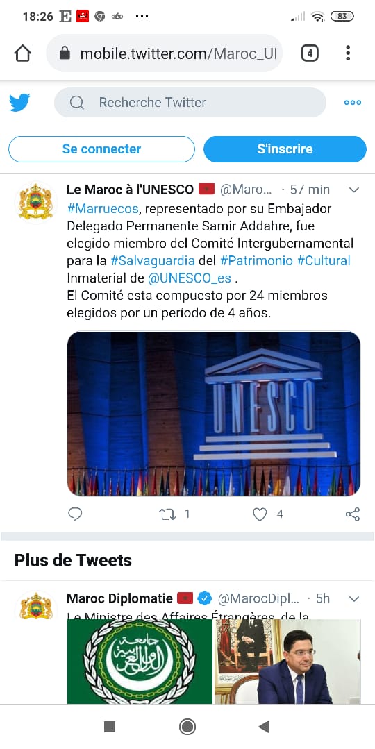 انتخاب السفير المفوض الدائم ممثلا للمغرب بلجنة حماية الثرات اللامادي نساء ومنوعات آخر تحديث يناير 12, 2022 مشاركة تم انتخاب المغرب عبر ممثله السفير المفوض الدائم سمير الظاهري عضوا بلجنة حماية الثرات الثقافي اللامادي باليونيسكو. اللجنة مكونة من اربع و عشرين عضوا ينتخبون لمدة أربع سنوات Facebook Twitter WhatsApp