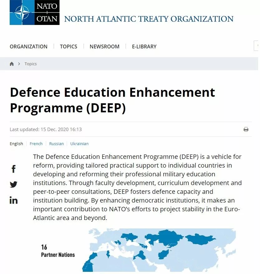 أظهرت خريطة نشرها الناتو مؤخرًا فيما يتعلق بمشروعه ، برنامج تحسين التعليم الدفاعي (DEEP) ، بشكل غير متوقع أن الحدود المغربية تمتد إلى أراضي الصحراء المغربية وفقًا للمطالب الإقليمية للرباط.