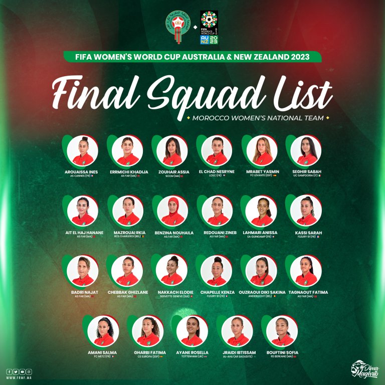 كشف رينالد بيدروس، مدرب المنتخب المغربي لكرة القدم النسوية، عن اللائحة النهائية للاعبات اللواتي سيمثلن المنتخب الوطني في نهائيات كأس العالم التي ستجرى أطوارها ما بين 20 يوليوز و 20 غشت المقبلين بأستراليا ونيوزيلندا.