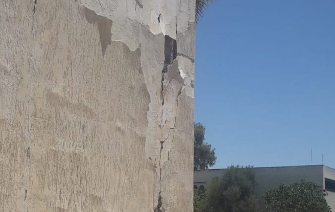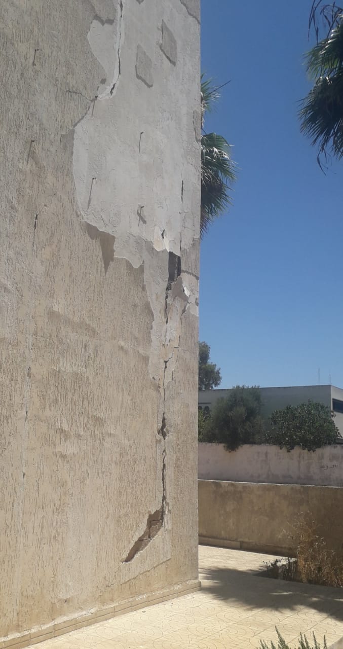 ولتنوير الرأي العام بهذا الخصوص، فإن طاقم “سياسي” في زيارة له بالموقع اكتفى بالتقاط صور خارجة للبناية حتى لا يدخل في نزاع مع رجال الأمن الخاص الذين كلفوا بحراسة البناية في إطار استمرار إهدار المال العام وحتى لا نتسبب في قطع الأرزاق، فالشقوق في الجدران والسواري جد بليغة وتظهر من بعيد وبعض السوار توشك على الانهيار، والله أعلم بحال البناية من الداخل.