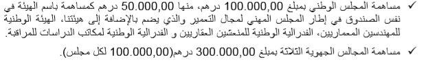 كما أن الرئيس تحايل على الأعضاء المنتخبين بالمجلس الوطني كي يفرض قراره عليهم، خارج مداولات المجلس الوطني، وفرض بهذا القرار مساهمة المجلس الوطني في صندوق كورونا ب 10 ملايين سنتيم، وفرض على كل مجلس من المجالس الجهوية الثلاثة، وبنفس القرار، المساهمة بمبلغ 10 مليون سنتيم في صندوق كورونا وذلك كما يثبته المقتطف التالي من رسالة الرئيس الموجهة للمجلس الوطني والذي فصل فيها 40 مليون سنتيم من مساهمة الهيئة كالتالي: