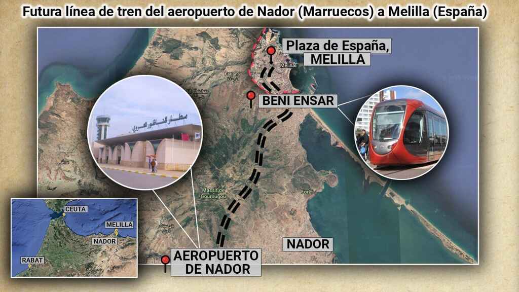 وسيربط ترام من المقرر إجراؤه في عام 2025 المطار بميناء بني أنصار في المدينة الواقعة على الحدود مع مليلية ويمر عبر الناظور.