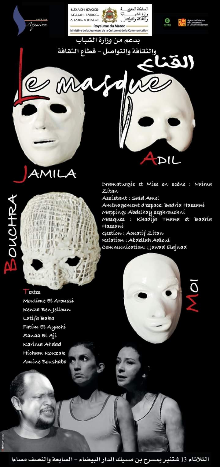 قدم مسرح اكواريوم مسرحية القناع يوم الثلاثاء 13شتنبر 2022 على خشبة مسرح ابن مسيك بدعم من وزارة الشباب والثقافة والتواصل ،قطاع الثقافة بحضورجمهور نوعي متميز تابع وصفق وتفاعل مع لوحات المسرحية بتجاوب كبير