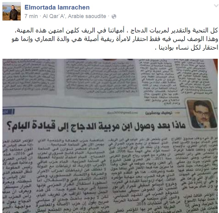 الذي اختاره توفيق بوعشرين لافتتاحيته ” ماذا بعد وصول ابن مربية الدجاج إلى قيادة البام؟” استأثر باهتمام كل الفئات بمختلف تكويناتهم و انتماءاتهم السياسية ومرجعياتهم الفكرية، الذين ارتأوا في العنوان اساءة لالياس العمري الأمين العام الجديد للبام.