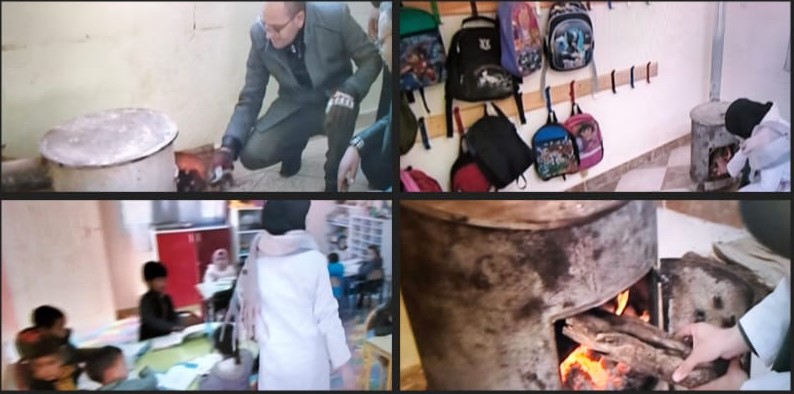 عندما يتحالف الصقيع و الساعة الإضافية التي تستوجب على تلاميذ المناطق الجبلية أن يخرجوا في السروية ، تصبح تلك الأجسام الصغيرة عليها أن تتحمل ساعات طويلة في القسم والصقيع على نار هادئة تسمى تدفئة ومحرومين من فوائد التدفئة الكهربائية أو الطاقة الشمسية.