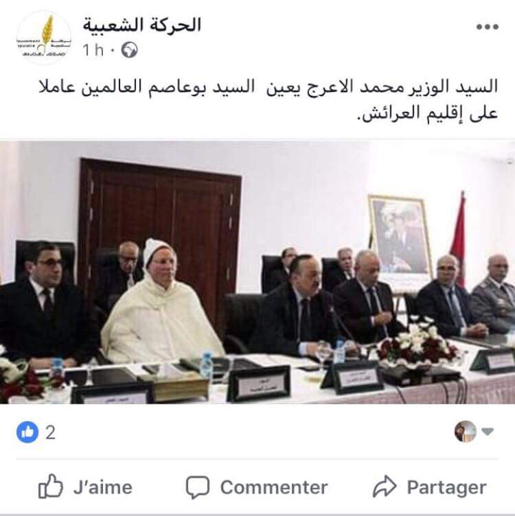 تداول نشطاء الفيسبوك بسخرية كيف نشرت إحدى الصفحات التابعة لحزب الحركة الشعبية التي ينتمي إليها وزير الثقافة والاتصال محمد الاعرج خبر ترأسه حفل تنصيب عامل اقليم العرائش…