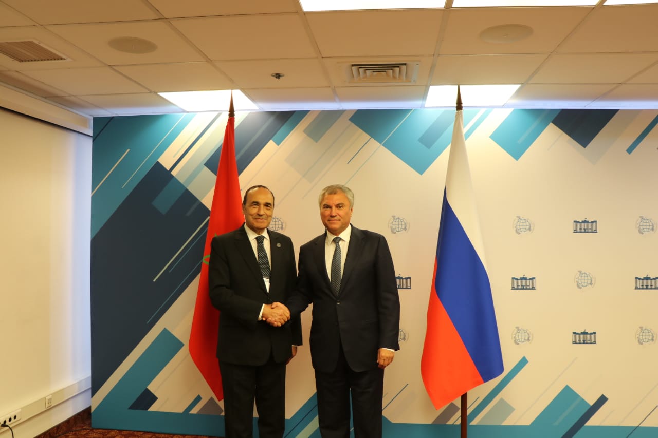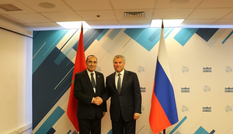 من جانبه رحب Viatcheslav ViktorovitchVolodineبلقاء رئيس مجلس النواب المغربي، واعتبر حضور الوفد المغربي رفيع المستوى باسم المؤسسة التشريعية المغربية للمنتدى البرلماني المنعقد بموسكو إشارة واضحة تدل على عمق وتقدم العلاقات الثنائية بين البلدين، وأكد ان “فيدرالية روسيا الاتحادية تعتبر المملكة المغربية بلدا مهما في منطقة شمال افريقيا وشريكا أساسيا، وقد أبانت المملكة عن مستوى تنموي جيد من خلال مجموعة من الاوراش على مختلف الأصعدة”.