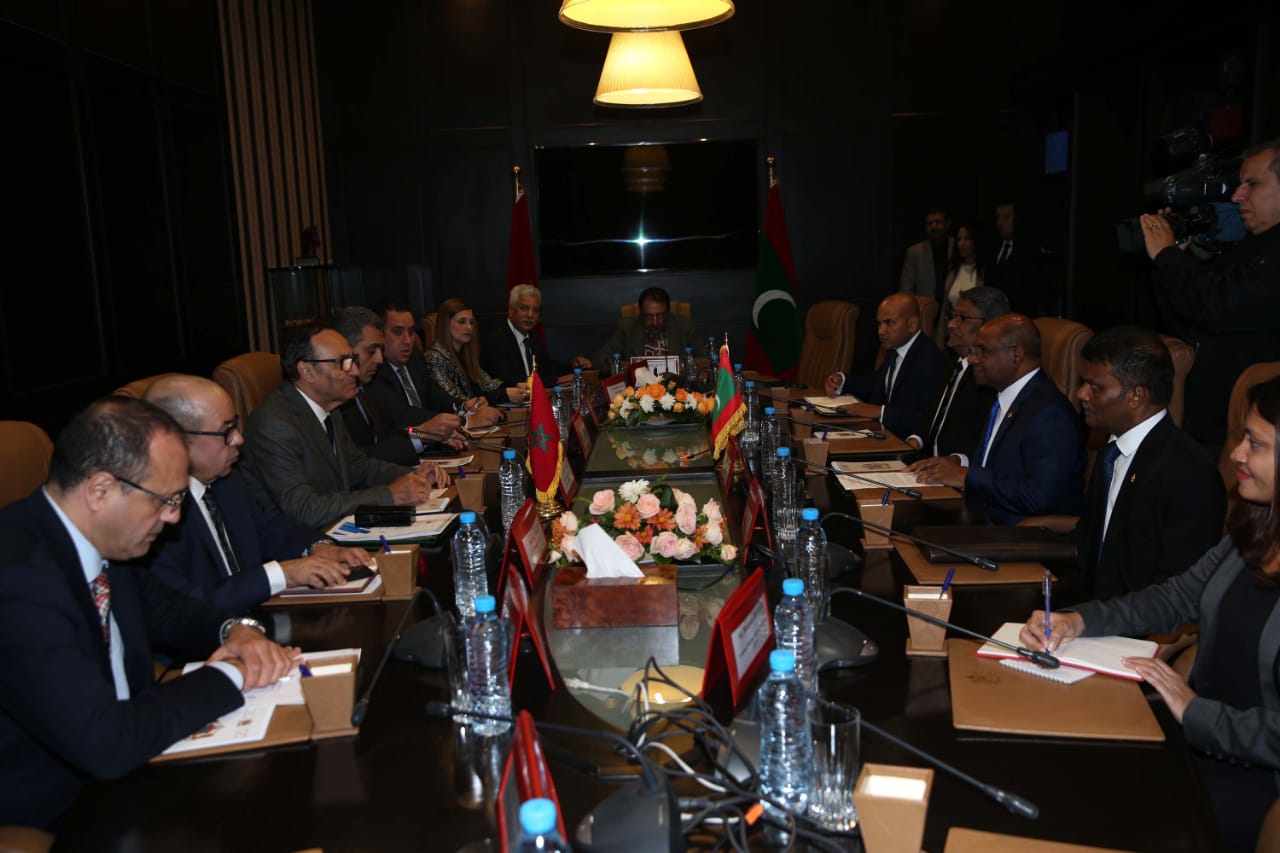 من جهته، نوه السيد وزير خارجية المالديف بجودة العلاقات التاريخية المتجذرة بين البلدين، وقال “الإسلام دخل المالديف في القرن 12 بفضل أحد الدعاة المغاربة، ومنذ ذلك الحين والمالديف دولة مسلمة”. وأعرب عن التقدير والعرفان لجهود جلالة الملك محمد السادس في تكريس الصورة الحقيقية للإسلام كدين معتدل ومتسامح ينبذ العنف والتطرف، وأضاف أن “جلالة الملك نجح من خلال مبادراته في إعطاء الدليل على أن الإسلام هو دين الحب والتسامح، ونحن بحاجة لقادة عظماء ليظهروا الوجه الحقيقي للإسلام”.