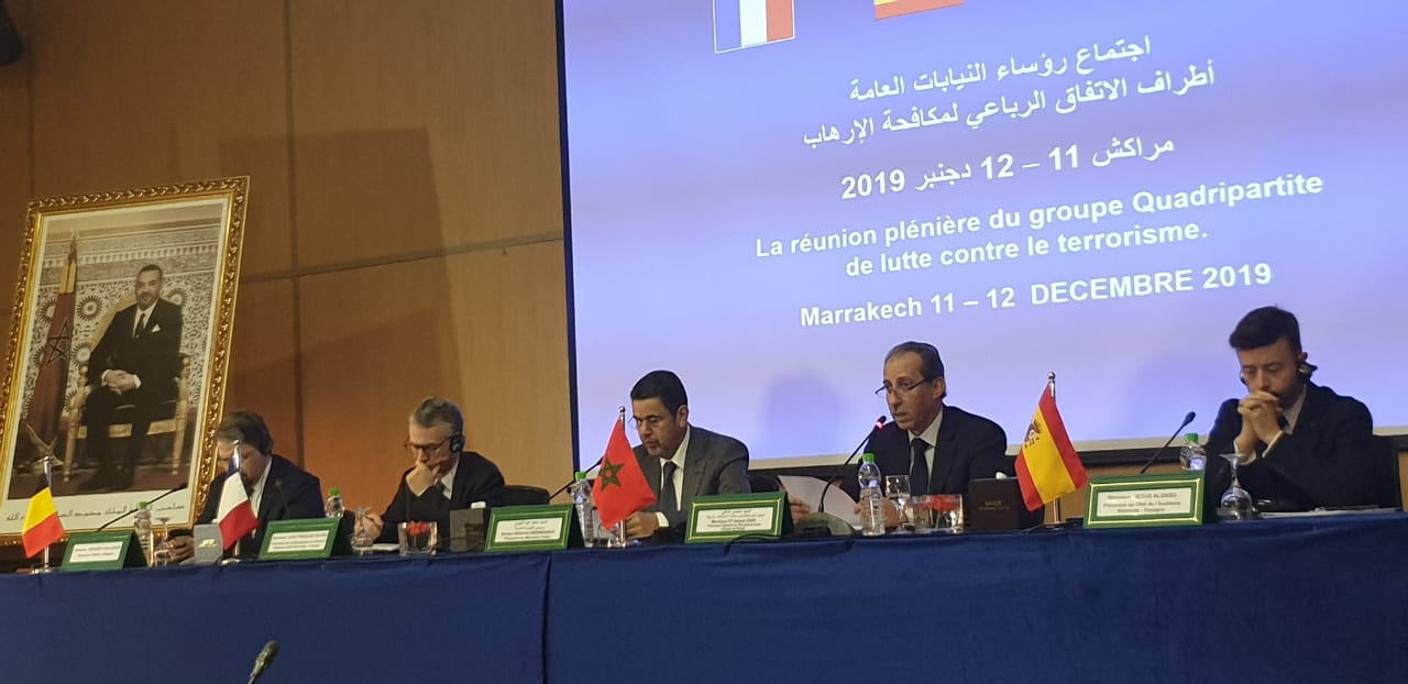 ويشكل اجتماع أعضاء اللجنة الرباعية، الذي تتشرف المملكة المغربية باستضافته هذا العام، فرصة لتحليل الوضع الراهن للتهديد المحتمل لخطر الإرهاب بالمنطقة ورصد التحديات القضائية والعملية أثناء البحث والتحقيق والمتابعات في القضايا الإرهابية. وكذا في تبادل وجهات النظر حول المنظمات الإرهابية وطرق تسييرها وتمويلها، ليتمكن كل طرف معني في الاتفاق، من إعداد تصور خاص به حول الخطر الإرهابي، وتحديد ما ينبغي القيام به من إجراءات للتصدي له. كما يعتبر مناسبة لتقييم ما تم إنجازه خلال السنة الجارية، ورسم معالم التعاون الأمثل للسنة المقبلة تحقيقا للأهداف المرسومة….”