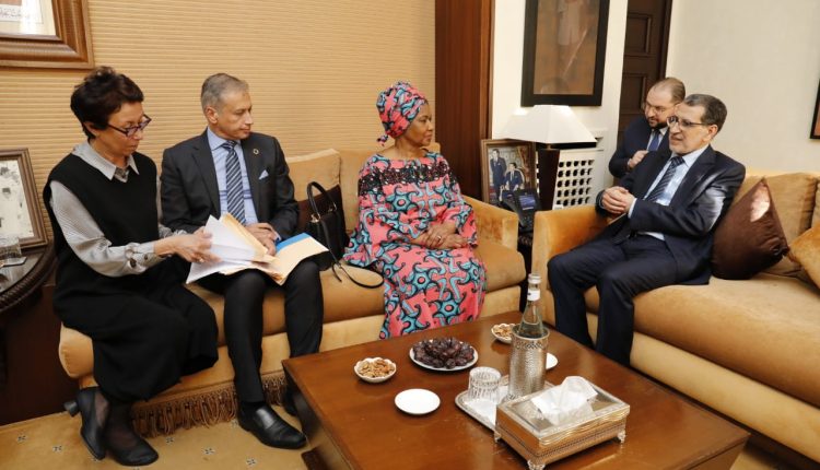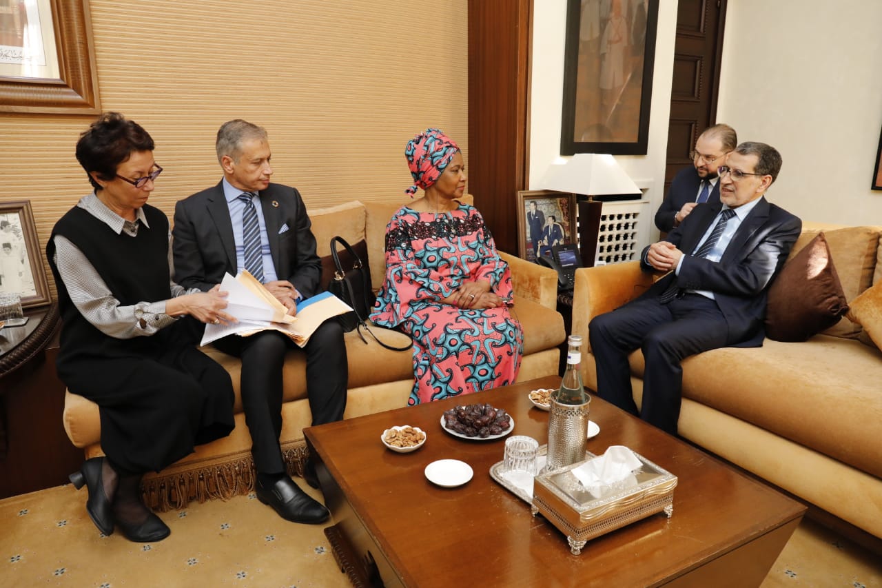 استقبل رئيس الحكومة، سعد الدين العثماني، يوم الخميس 27 فبراير 2020، السيدة بومزيلي ملامبو نغوكا، Mme Phumzile Mlambo – Ngcuka نائبة الأمين العام لهيأة الأمم المتحدة والمديرة التنفيذية لهيأة الأمم المتحدة للمرأة التي تقوم بزيارة للمغرب في إطار مشاركتها في المؤتمر العالمي الخامس للمدن والمساحات العامة الآمنة حول موضوع المساواة بين الجنسين والتمكين الاقتصادي للمرأة المنعقد في الرباط ما بين 26 و28 فبراير 2020.
