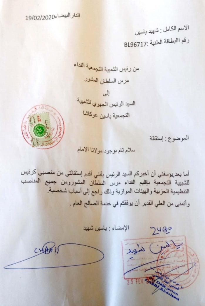 قدم رئيس الشبيبة التجمعية الفداء مرس السلطان استقالته من مسؤوليته و من الحزب .