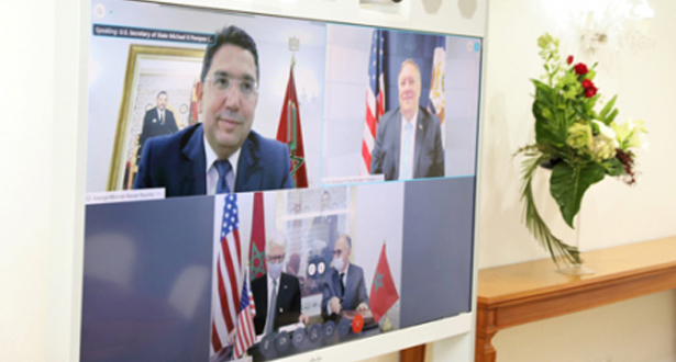 وفي لقاء عبر الفيديو قبيل توقيع هذا الاتفاق ، أشاد ناصر بوريطة ومايك بومبيو ، بالشراكة الإستراتيجية العريقة والدائمة التي تجمع المملكة المغربية والولايات المتحدة الأمريكية.